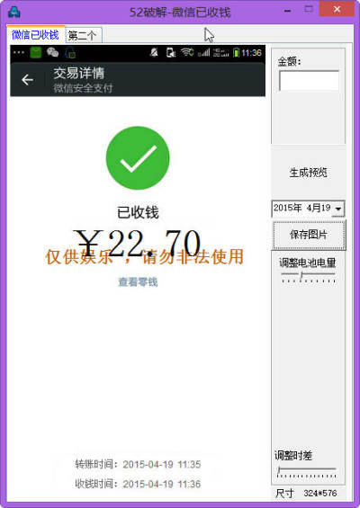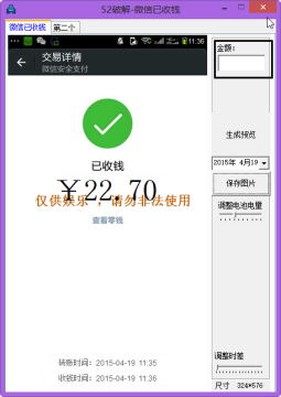 生活在微信的年代,你是否被朋友圈一大波刷屏代购招代理给吸引了?有时候看着看着还真会心动!今天我们是来打假的,不要认为坐沙发上吃吃薯条动动手指就月入过万了,骚年,赶快醒醒~~~ 通过“52破解微信已收钱”、“微信转账截图生成器”等系列软件,就是为了营造微店生意火爆的假象,以此来发展代理,其实说白了,就是变相的网络传销。搞微商的都是演技派啊,自导自演、自欺欺人。