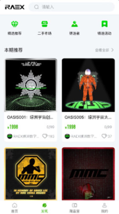 RAEX绿洲宇宙app是最近非常火爆的数字藏品软件,平台拥有丰富的数字藏品,可以收藏,欣赏,致力于传统和现代文化艺术的推广,每件藏品也有独一无二的认证,具有收藏价值,快来下载体验吧。