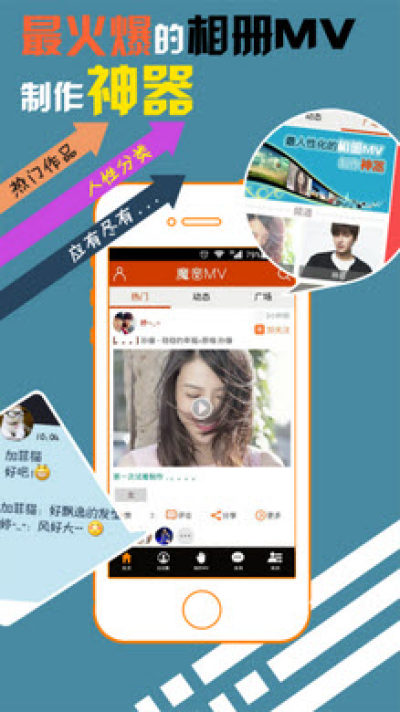 魔音MV是一个非常受欢迎的MV视频制作分享软件,大家可以通过它将照片、视频、音乐和歌词等内容编辑成一个MV,用来记录曾经发生的一些开心、有趣的瞬间,该手机客户端操作起来也非常的简单方便,感兴趣的朋友可以来试试看哦!