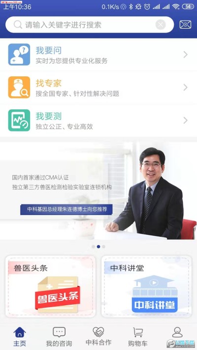 “中科名兽医”是一款集合“线上咨询”、“寻找知名兽医”、“兽医实验室检测”、 “兽医在线继续教育”等功能的兽医领域专业共享APP平台。