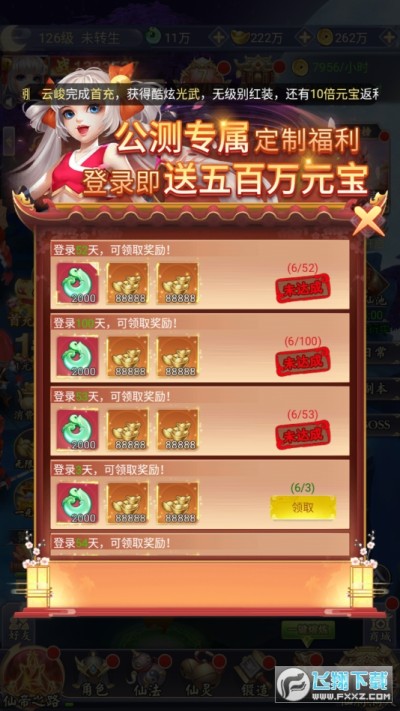 ★上线福利送 GM10、88888仙玉、888888元宝、1亿铜钱、GM10大礼包