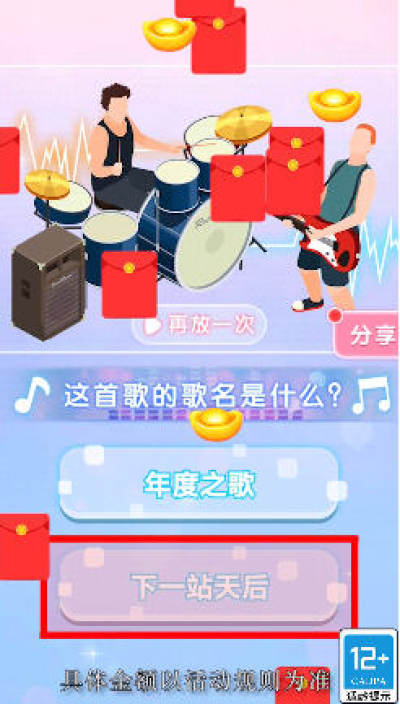 1.根据前奏,猜歌曲,回答问题。如果你答对了问题,你就可以收到红包了。每天都有很多挑战;