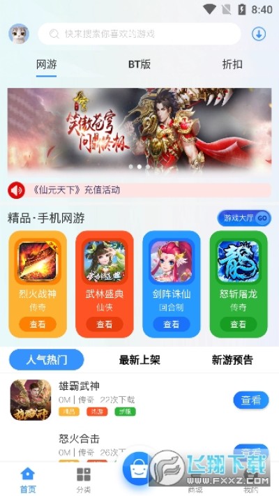 4.特色板块:单机、网游、排行、推荐。多种模式供您筛选心仪游戏。