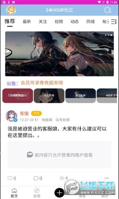 24h社区是分享给大家的一款美少女二次元图片共享软件,界面功能齐全,拥有大量二次元视频图片资源,全部免费观看下载使用,用户还可以将自己创作的作品图片上传至平台与大家分享,兴趣交友圈内容广泛,喜欢的小伙伴可以在此页面下载哦。