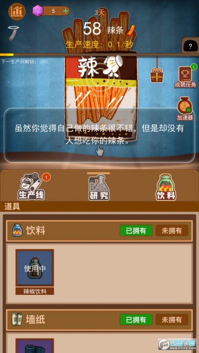 辣条模拟器游戏是一款养成经营向游戏,游戏中玩家将从制作辣条开始,点击即可不断生产辣条,海量的成就任务等你解锁,复古像素游戏画风体验,游戏玩法趣味轻松,随时随地都能打开畅玩本游戏,对游戏感兴趣的话不妨点击下载试试!