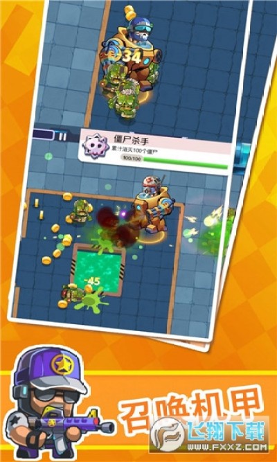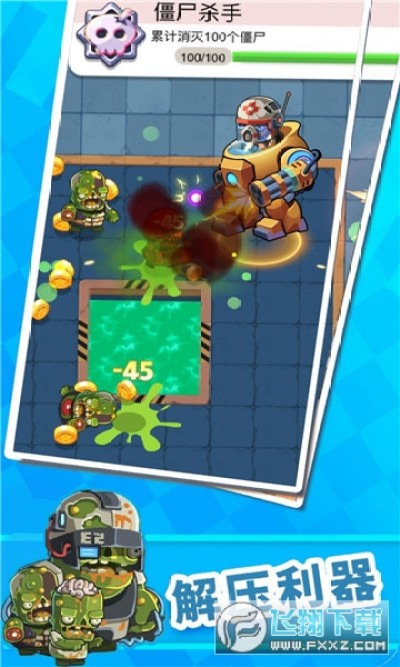 1、卡通僵尸射击闯关游戏。可爱的小僵尸轻松射击,更多的步枪;