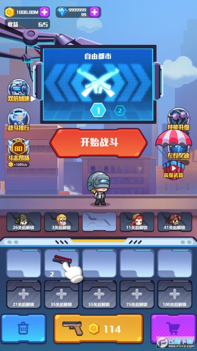 3、玩家在取得一定成绩后,可以将自己的等级提升到一定的水平,开启更多的武器。