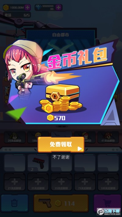 1、现在上线就能免费领取无限钻石,购买强力的武器进行闯关。