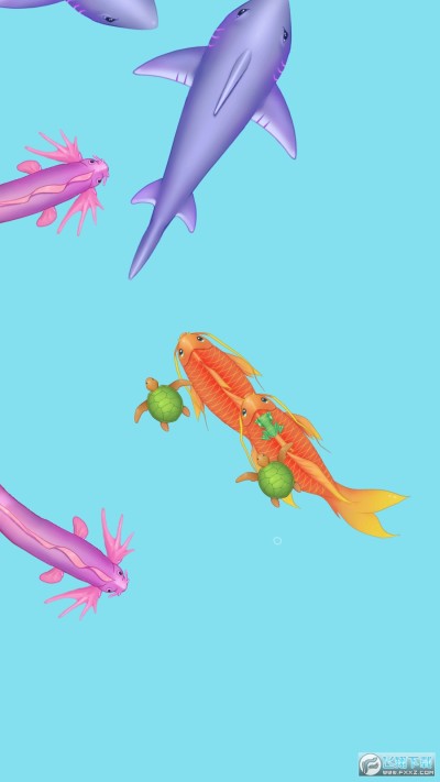 5、三只小海龟合成后就会变成小鲤鱼,依次类推,不断的去进行合成。