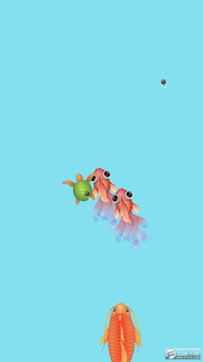 5、三只小海龟合成后就会变成小鲤鱼,依次类推,不断的去进行合成。