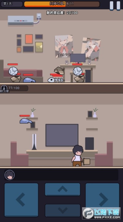 2、操纵自己的小人防御接近垃圾敌人。可以使用拳头,也可以使用武器和道具。