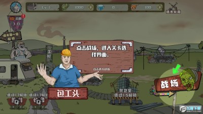 玩家在游戏中扮演工地指挥官和丧尸们进行一场场的激战,战斗中需要获取必要的资源,再派遣各式各样的兵种到前线战斗。面对大量丧尸的进攻,我们斯特城55号工地还配备了各式黑科技武器,只要击杀够多的丧尸,获取充足的能源,即可点火开炮。来吧,我的朋友,这里就差一个像你一样优秀的指挥官了,不好,该死的丧尸们又从桥那边过来了,现在得去找找那把进口的花剌子步枪了,我要扛枪上阵和丧尸们大战个300回合。