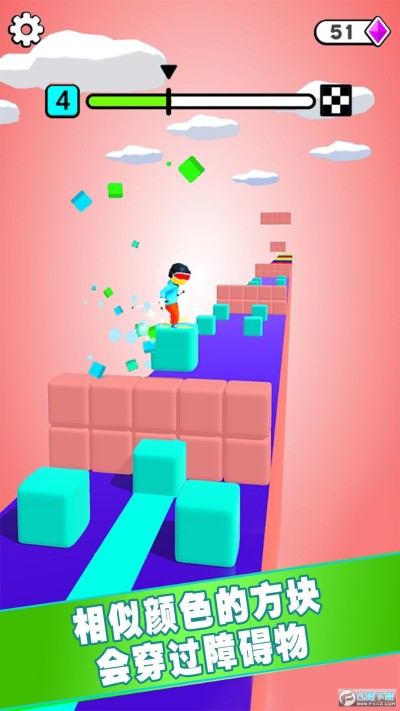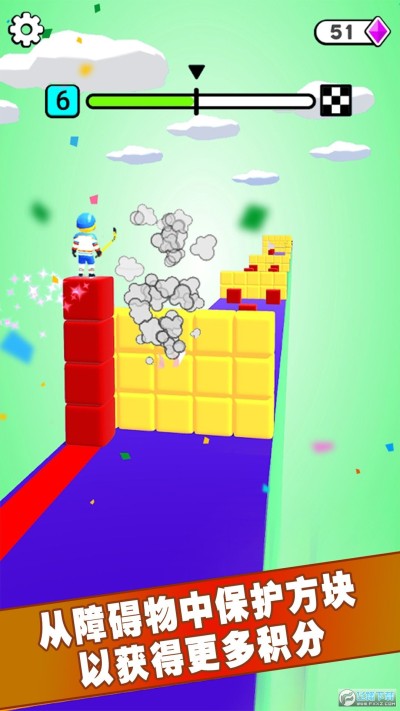 3、躲避障碍物,在这里尽可能收集更多的的方块,可以帮助玩家闯关。