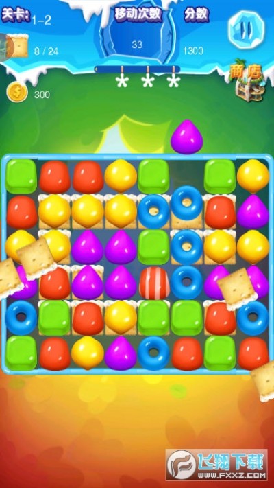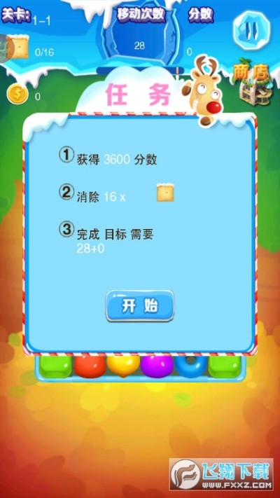 3、通过关卡消除一定的方块获得对应正确的分数;