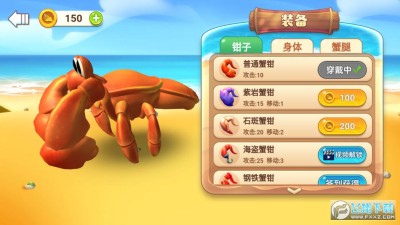 4、精致的3D卡通画面风格,成为强大的螃蟹,争夺蟹王的宝座,实现全新升级;