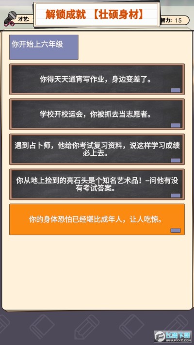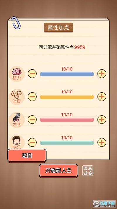 开局根据固定的数值分配好自己的初始天赋和属性值,依据游戏内的突发事件选择人生的进行方向,触发不同的走向和结局。