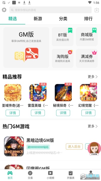 GM游戏助手app是一款手机游戏盒子软件,软件中内含海量的优质游戏资源,包含gm版本、BT版本等等游戏版本内容,你可以选择喜欢的游戏类型下载畅玩,还可以一键选择买卖账号等交易操作,每天都会更新超多游戏资源,对软件感兴趣的话不妨点击下载!
