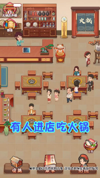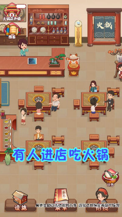 通过在手机上模拟开店的形式,让你轻松把钱赚, 超低的提现门槛,超高的佣金,赚钱的就是这么简单,开局一个火锅店,怎么让火锅店的人气变旺呢,这就需要你的经营了!