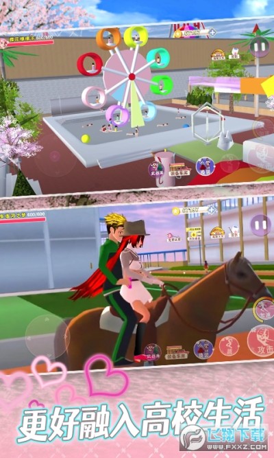 《樱花校园娜娜子姐姐》这是一款二次元风格的3D高校模拟游戏,在动漫校园里面会发生一系列有趣的事情,女主将会带领她的闺蜜一起完成各个任务点,你可以乘坐过山车、摩天轮、开豪车、骑摩托车、踢足球等体验,终极BOSS等着你去挑战哦!