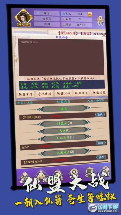 3、联盟收益,每观看一次广告,所在联盟的所有盟友都会获得一定数量的灵石收益,每人每天最多只能观看20次广告,获得的收益请及时领取,退出联盟或者被驱逐出联盟后,未领取的灵石收益将会作废;