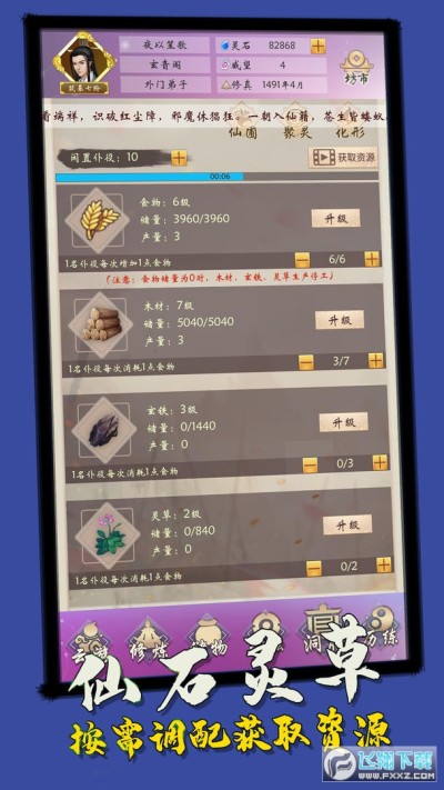 6、仙石灵草,按需调配获取资源。