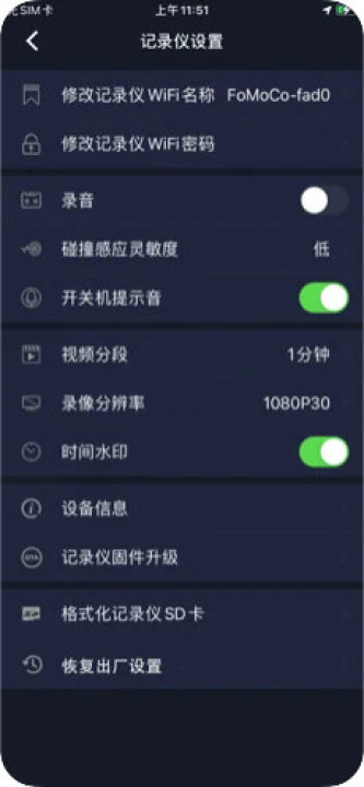 福特电马DVR APP软件主要服务于福特纯电野马品牌汽车所安装的行车记录仪用户,利于用户能更好的记录智能前视行车视觉,并根据客户需求定制化开发了手机互联的功能操作界面,提供一键拍照、一键分享、视频剪辑等功能。