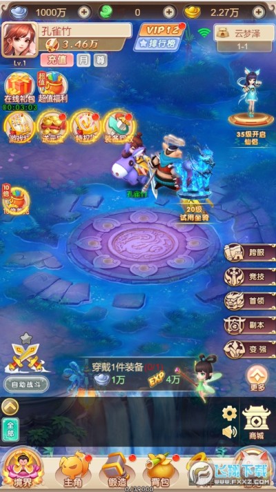 2:这游戏其实根本不用氪金,不氪金也能玩的很爽,氪金的唯一用处就是可以让你玩的更爽而已,首次转幸运转盘十连抽,保底送的宠物呀,仙侣那些,个个都是极品,90W战力前中期只培养他们,什么副本打不过?什么BOSS打不过?