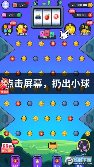 1、不同的空间有着不同的加倍数字,选择合适的弹球开始挑战;