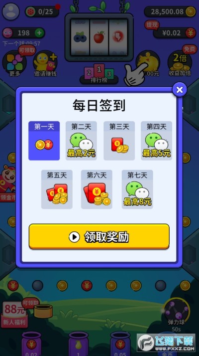 《全民来弹球红包版》挺另类的红包游戏,玩法形式有点像小时候玩的弹珠子,也有点像柏青哥,玩家在游戏中要借住从上方落下的弹球,在弹球掉落的过程中可以累积金币,看视频可以累积现金红包,也可以翻倍当前的收益红包,主要还是要借住球球触发红包奖励,感兴趣的可以挑战看看。
