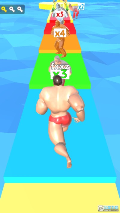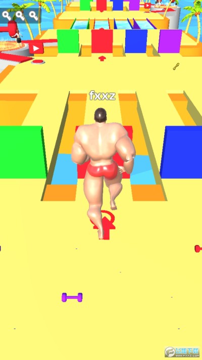 游戏过程中玩家通过捡取赛道内的道具,提升自己的肌肉和体格。