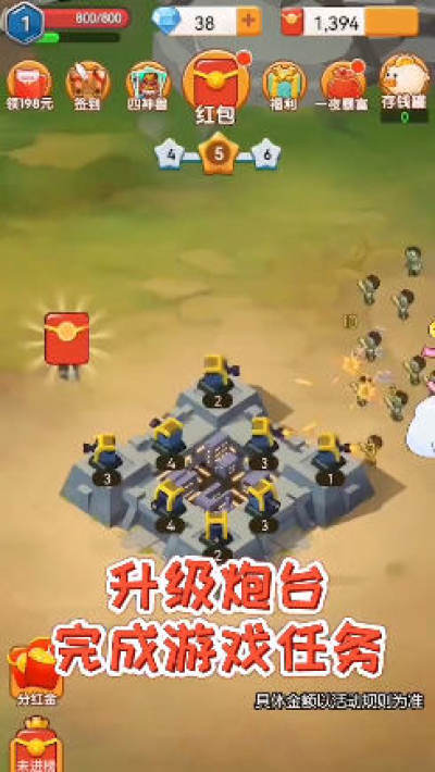 打怪赚翻天红包版游戏是一款非常好玩的塔防赚钱游戏,游戏中玩家可以不断的升级炮台提升炮台战斗力,消灭所有的怪物即可获得红包奖励哦!喜欢的小伙伴赶紧来下载吧!