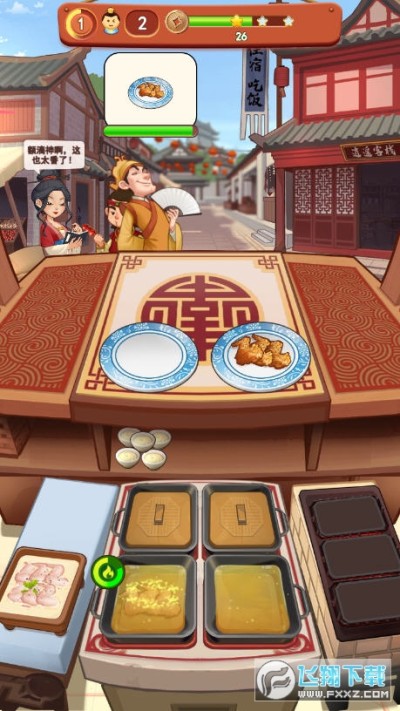 至尊厨神穿越古代,要做100万份美食才能回到现代!穿越古代做大厨是一款竖屏操作的美食烹饪类手游。游戏操作非常简单,只需点击屏幕即可完成操作,不同拖动食物递给客户,只需点击食物即可自动分给顾客,是不是超方便!感兴趣的小伙伴们快来下载游戏试试吧~
