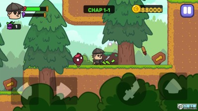 非常有趣的一款卡通风格的闯关冒险游戏,控制着角色进行冒险,越过各种障碍,和不同的怪物进行战斗,不断的收集获取更加强力的武器进行闯关,快来下载吧!