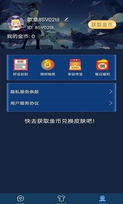 2、完成任务领取金币,即可兑换想要的皮肤和点券;