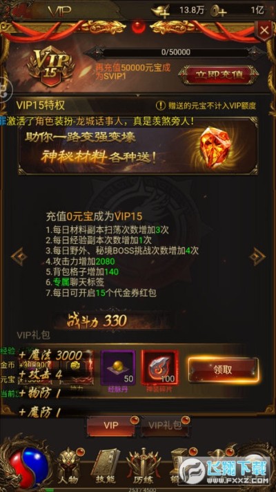 全新GM特权,应有尽有!无限每日送真充,绝版时装、元宝、极品装备材料全部免费无限送!