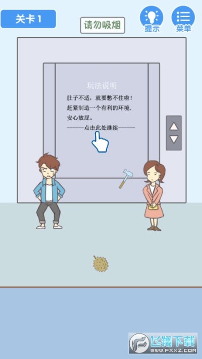 就是憋不住是一款恶搞休闲解谜闯关类手游。游戏中主角无时无刻都想放屁,你的目的就是帮助他在没人的地方释放自己,如果在别人面前不小心释放了,不仅社死游戏也会结束喔~感兴趣的小伙伴们快来下载游戏挑战吧~