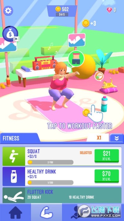 2、玩家将在游戏中进行不停的锻炼,从一个胖女孩成为一个身材完美的女孩;