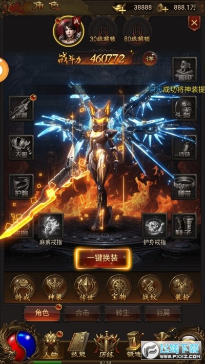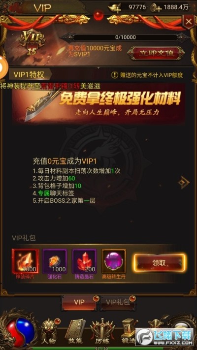上线送38888元宝x2+1888w金币+炫酷时装+vip15