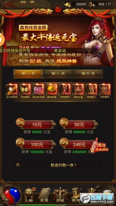 3.多重路线发展,野外PK爆装、群挑高难度BOSS、夺稀世珍宝、白手起家任务赚金,可玩性超高的玩法让玩家自由选择,缔造自己的传说!