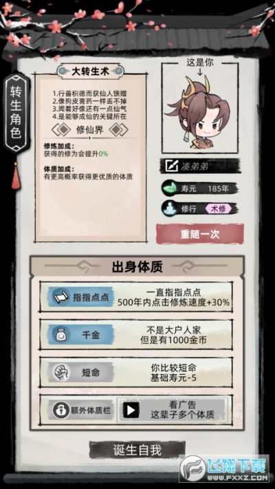 1、在天赋选择界面和心法界面尽量选择寿命增加的词条,前期因为寿命较少,并且每年都会减少寿命。选择寿命增加的词条大大增加了人物的存活率,而且人物在提升体质的时候会加一定的寿元,和寿元上限。