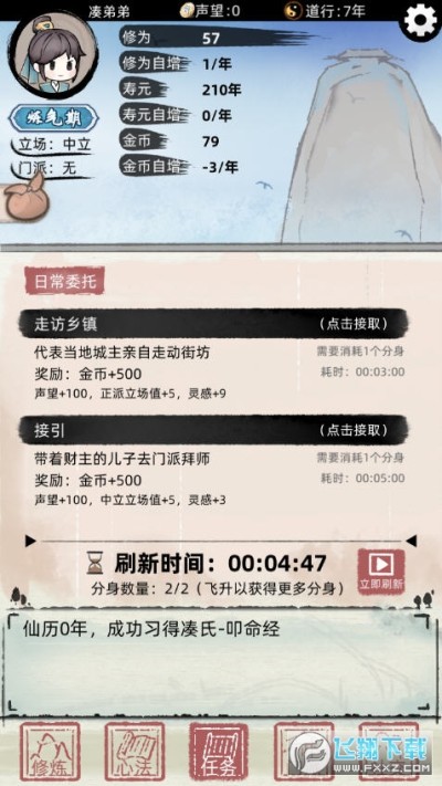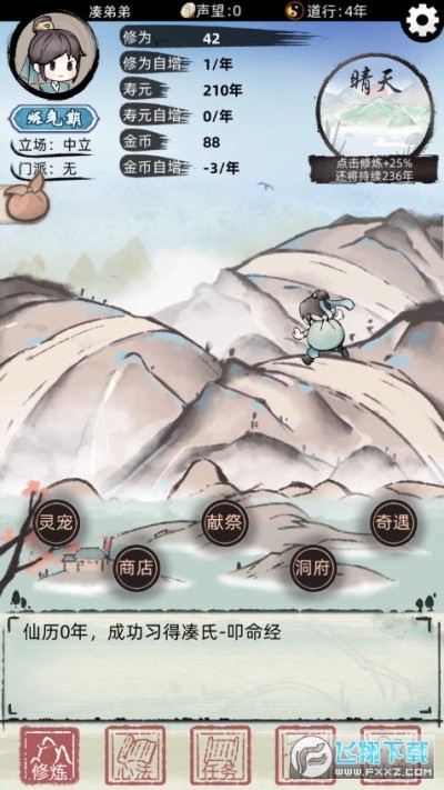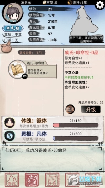 9、心法可以自动获取修为,获取修为的量取决于心法的等级,品质,数量。