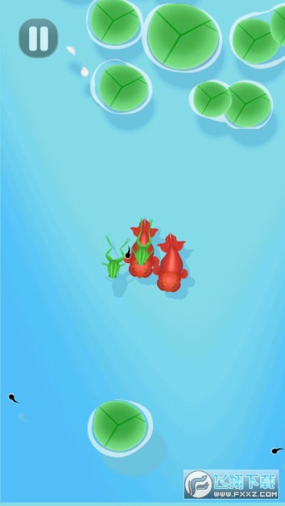 小青蛙吃了小蝌蚪,身边就会多了一颗小蝌蚪,当两只小青蛙合成后,就会变成小海龟,以此类推。