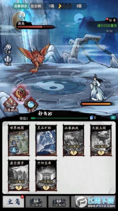 2、修仙之路漫漫,可以和王者长生不老,与真气斗剑,消灭八大野怪,获得更多奖励助你战斗;