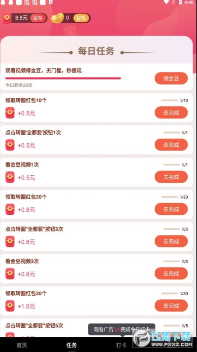 《刷豆豆短视频app红包版》是一款刷短视频就可以赚钱的手机软件,这款赚钱软件中国的功能丰富,有每日任务和连续打卡,玩家在游戏中可以参与任务领取现金,累计金豆数量也可以兑现成红包提现哦!还有打卡任务需要你的坚持,完成这些任务每日都可以领现金了哦!