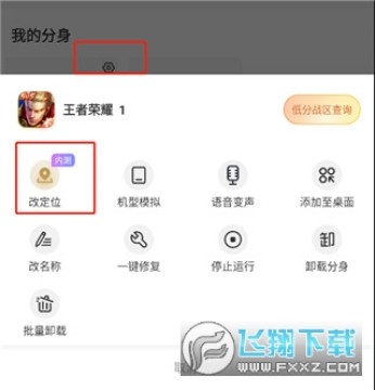 4、再长按王者荣耀图标左上角齿轮弹出菜单框,点击修改定位;