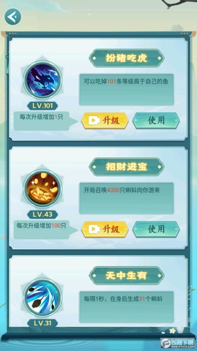 3、如果玩家在途中遇到一条比自己大的鱼,它会变成一条小鱼。