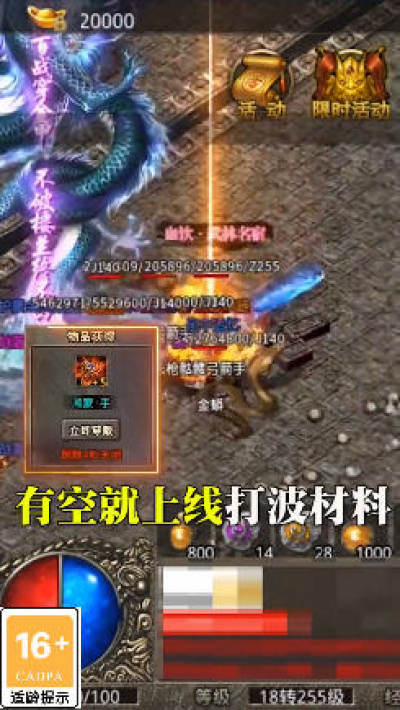 屠龙宝刀爆率超高,皇城争霸唯我独尊,在这个热血的战场上,怎么少的了神器的风采!