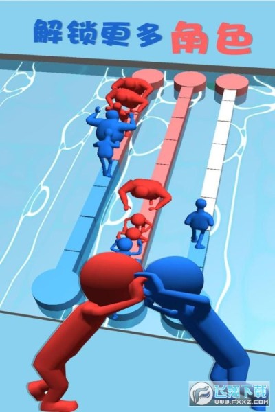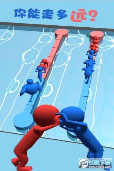 红蓝推手是一款3D小人进行竞赛的闯关手游,游戏内红蓝两房讲在水桥上决一胜负,各方都派出自己的选手,趁着对方不稳定的时候抓住机会将对手推入水中以此来获得胜利。