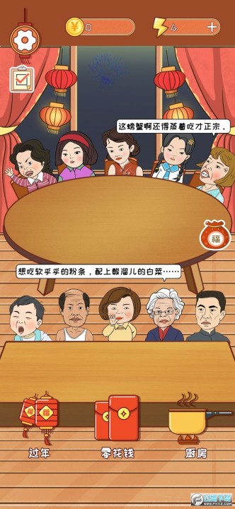 春节模拟器共有10个大型章节,涵盖了从回家过年到年夜饭上的各种经典场景,阿姨们的盘问、叔叔的教诲、熊孩子捣乱……看你如何应对。