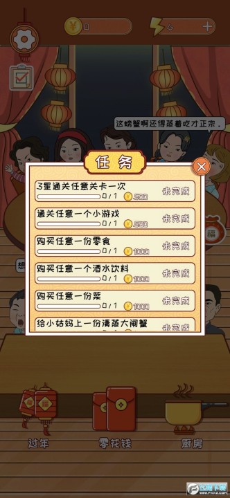 每个章节都能解锁年味浓浓的小游戏,抢红包、包饺子、帮眼花的姥姥找东西……通过小游戏赚取零花钱,为年夜饭加点菜~